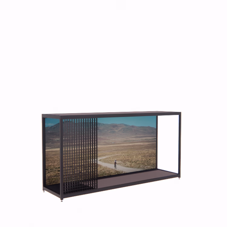 Made from recycled steel, Poggio Large offers a durable and sustainable display solution. The frame can be positioned against a wall or used as a midshop display and is equipped with adjustable feet to ensure stability and precise levelling, even under heavy loads.